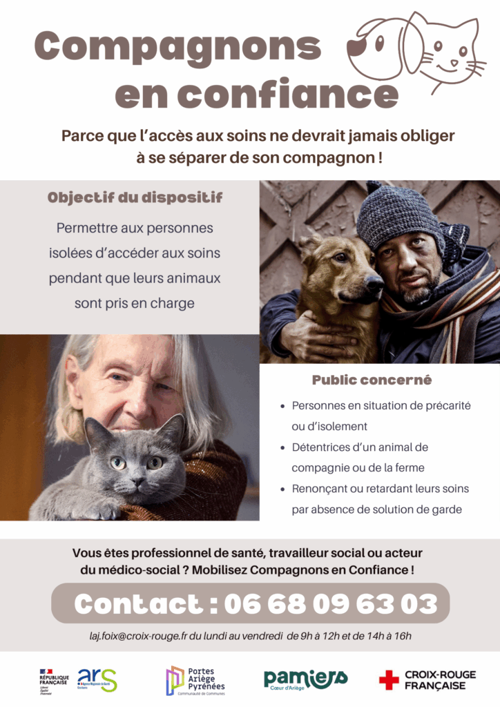 Soucieuse de garantir à tous les habitants un égal accès aux soins, la Communauté de communes des Portes d’Ariège Pyrénées (CCPAP) s’engage aux côtés de la Croix-Rouge française pour proposer Compagnons en confiance, un service innovant de garde solidaire pour les animaux de compagnie.